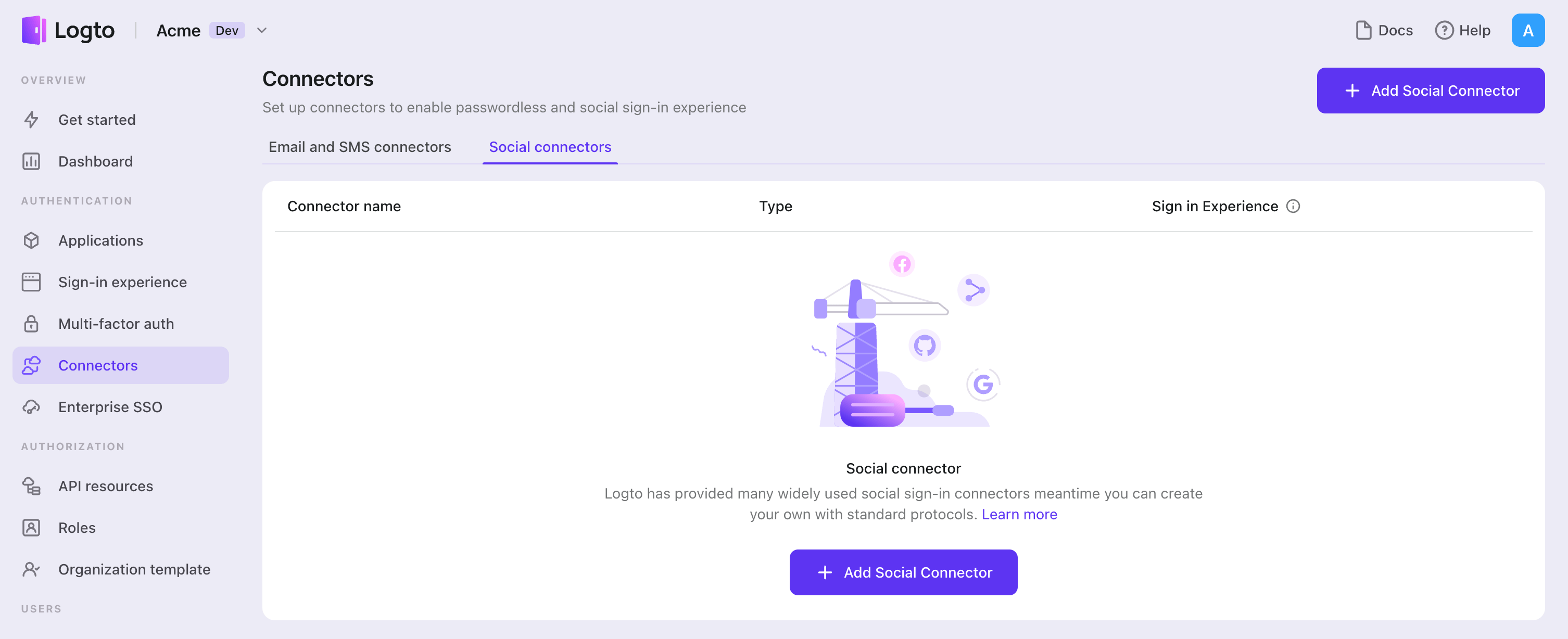 Once you create a social connector successfully, you can enable it as a "Continue with Google" button in Sign-in Experience.